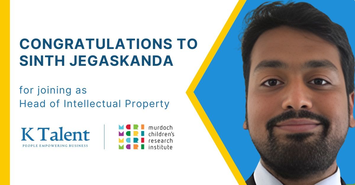 We have been delighted to work with Murdoch Children's Research Institute (MCRI) to appoint Sinth Jegaskanda, PhD, MIP as the new Head of Intellectual Property. Congratulations to Sinth and we look forward to the contributions he will make to innovation, with a broader impact on enhancing the health and well-being of children.